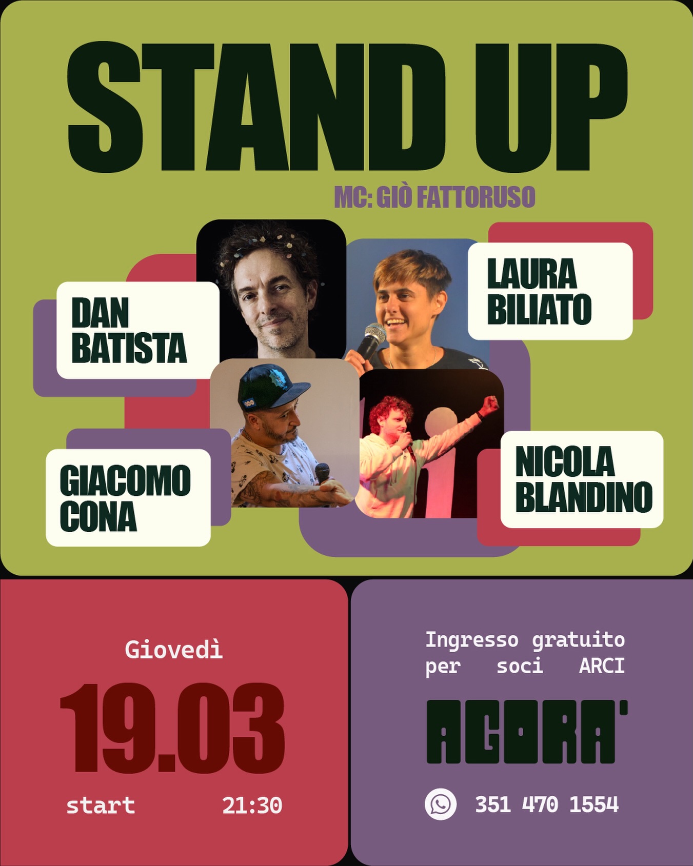 Stand Up Comedy Show con Giacomo Cona, Dan Batista, Laura Biliato, Nicola Blandino (MC: Gio Fattoruso)