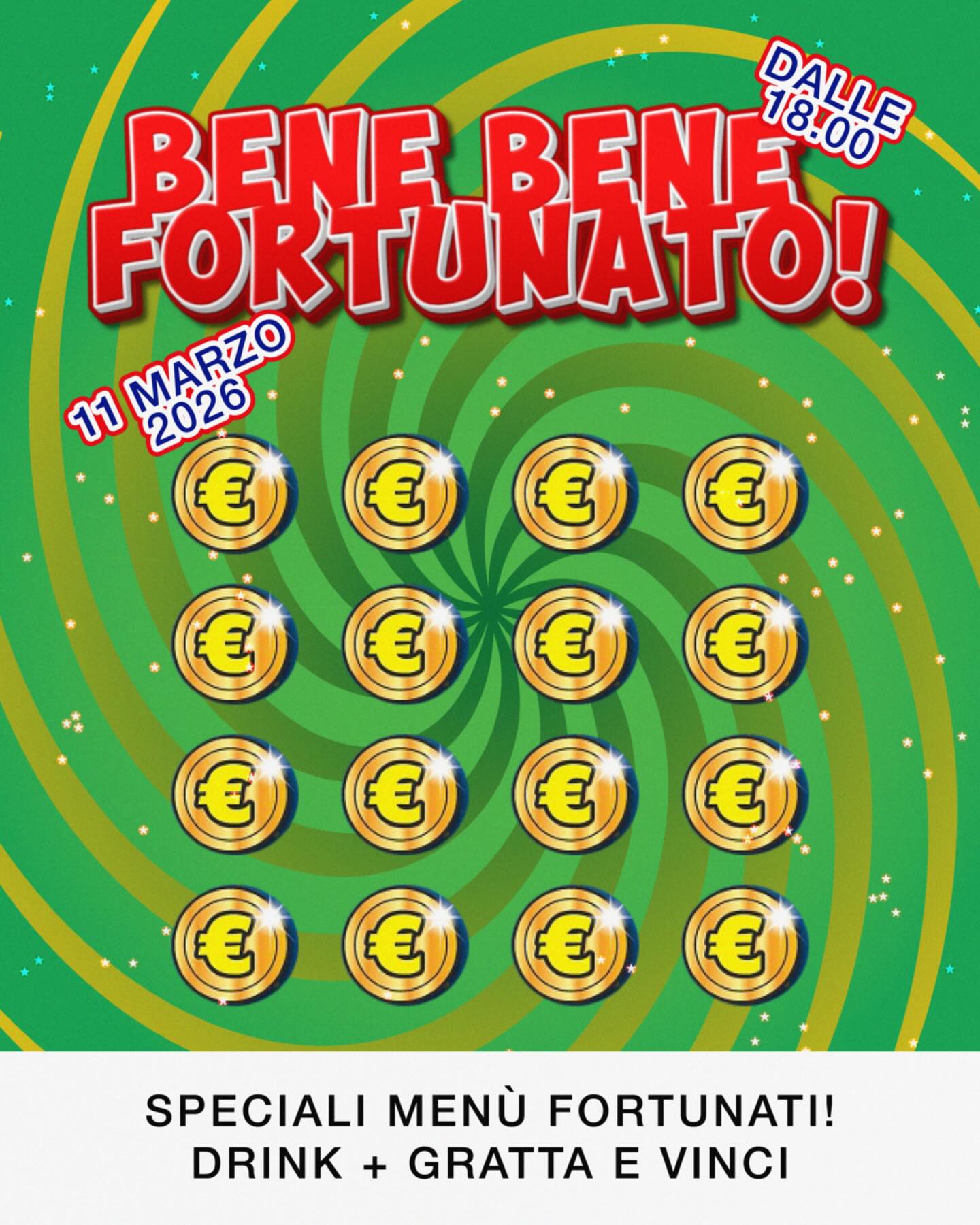 Bene bene bene bene Fortunato! Dalle 13:00 Speciali Menù Fortunati! Drink + Gratta e Vinci