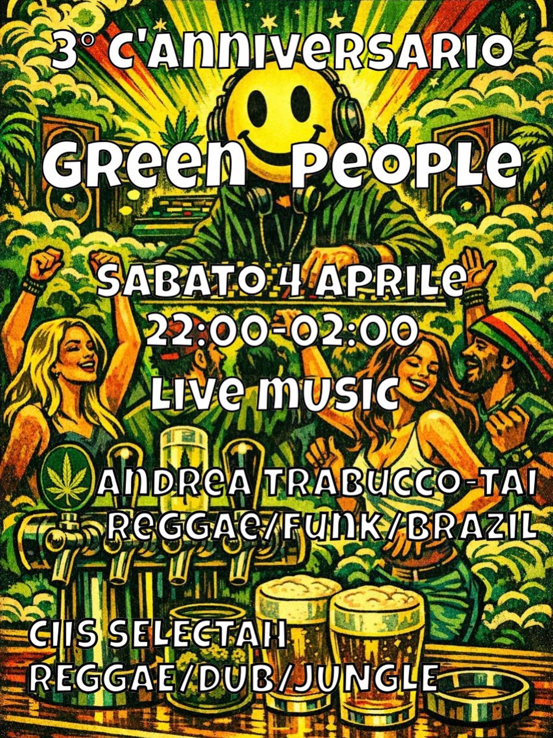 3° Anniversario Green People con live music Andrea Trabucco Tai (Reggae/Funk/Brazil) e Cis Selecta (Reggae/Dub/Jungle)