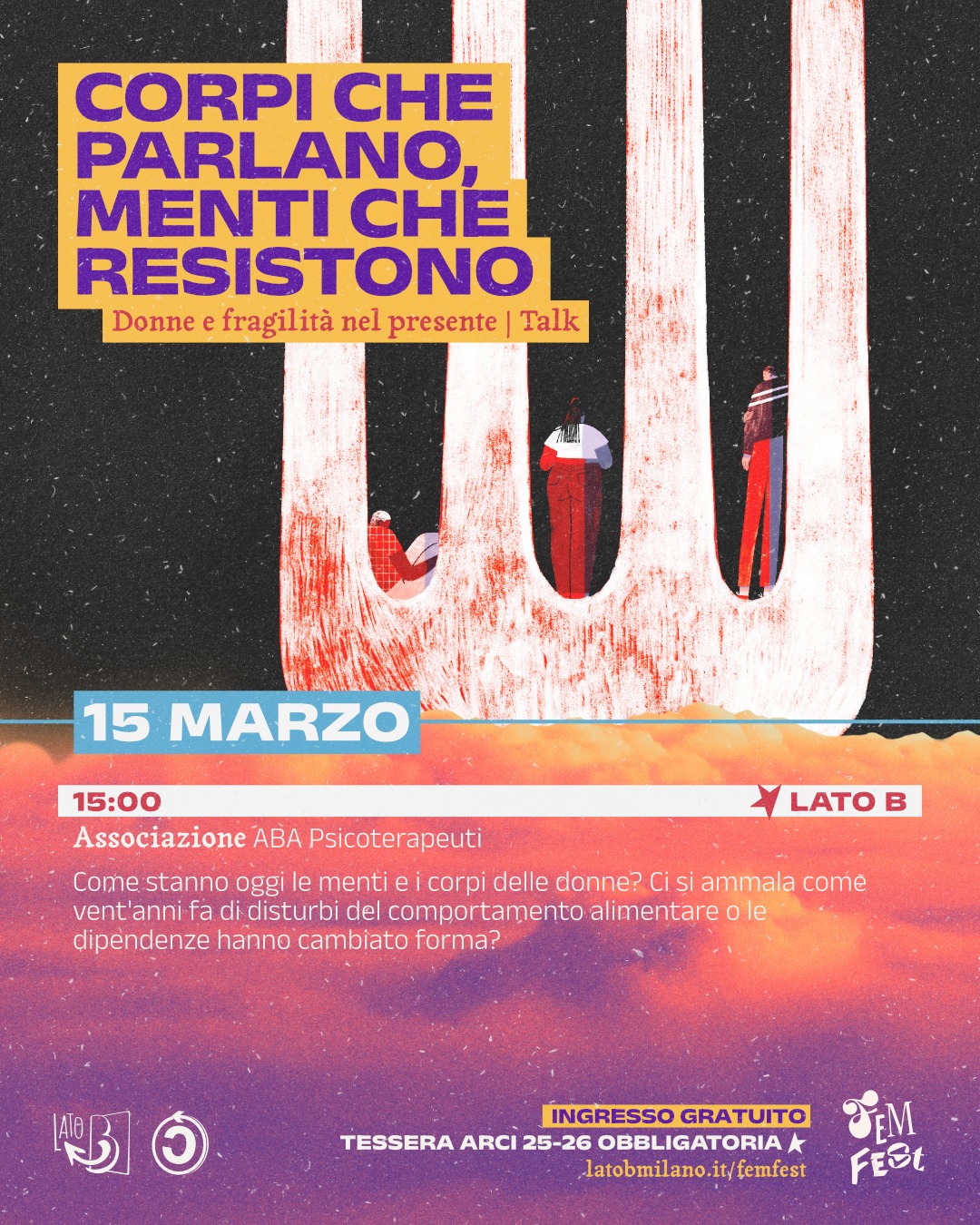 Talk 'Corpi che parlano, menti che resistono' - Donne e fragilità nel presente. Confronto con l'Associazione ABA Psicoterapeuti su disturbi alimentari e nuove dipendenze nel 2026.