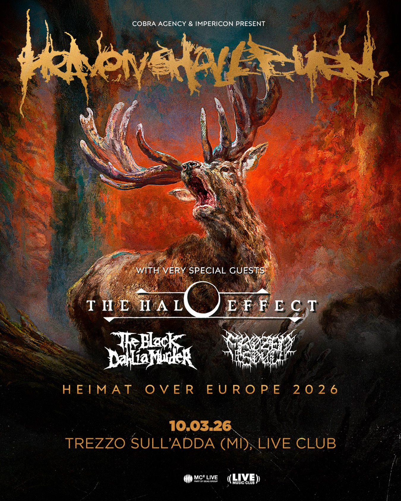 Heaven Shall Burn 'Heimat Over Europe 2026' con Frozen Soul, The Black Dahlia Murder, The Halo Effect