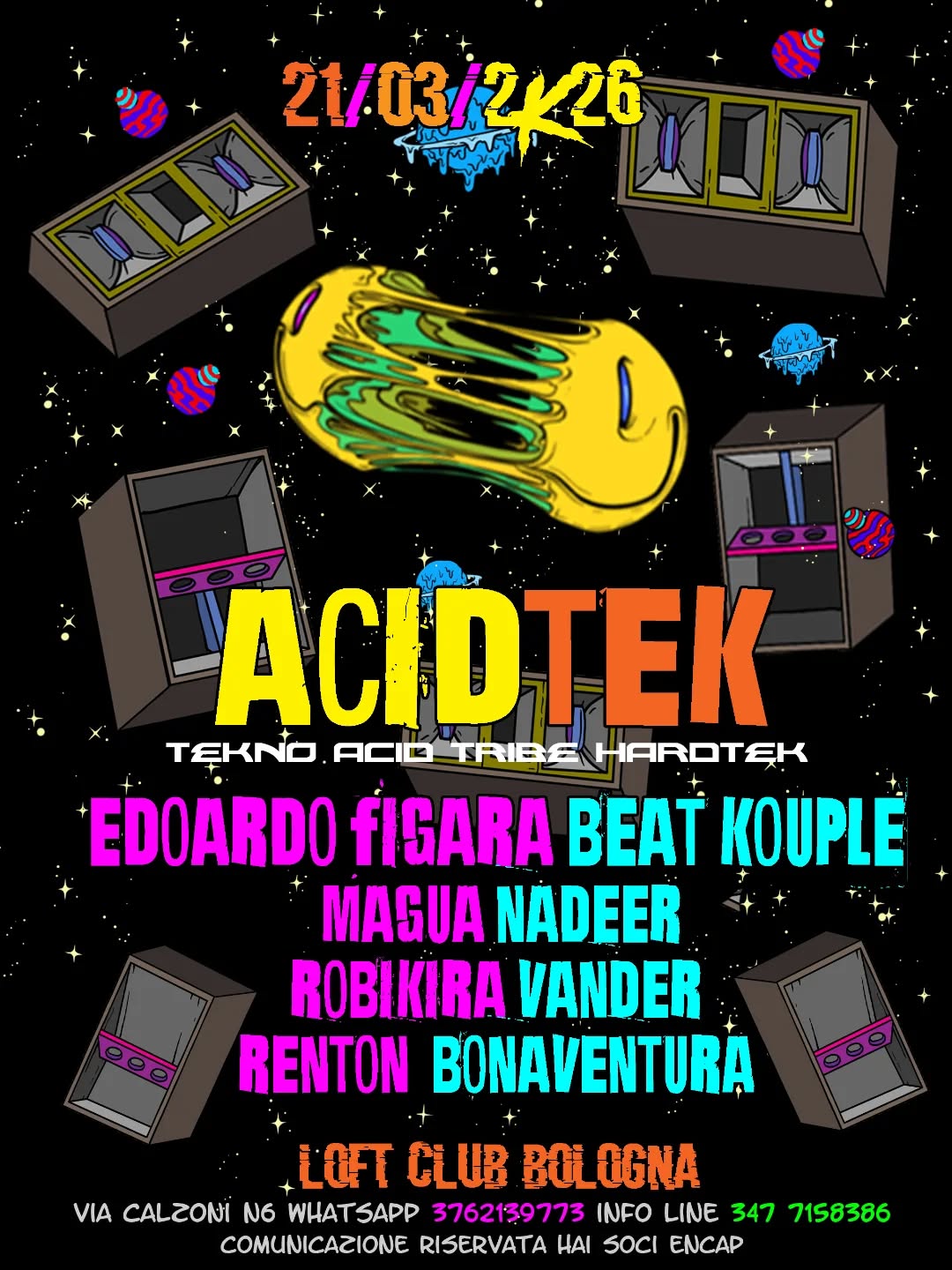 Serata ACIDTEK tekno, tribe, hardtekno, acid e bounce con Edoardo Figara, Beat Kouple, Magua Nadeer, Robikira, Vander, Renton Bonaventura