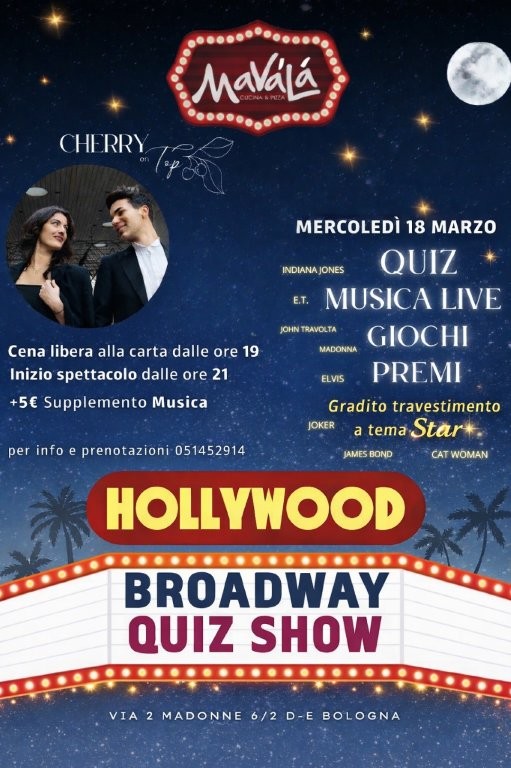Quiz Show a tema Hollywood & Broadway con musica live e performance di Cherry on Top