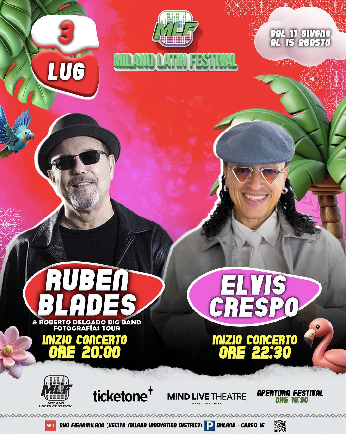 Doppio concerto con Rubén Blades ore 20:00 e Elvis Crespo ore 22:30 al Milano Latin Festival
