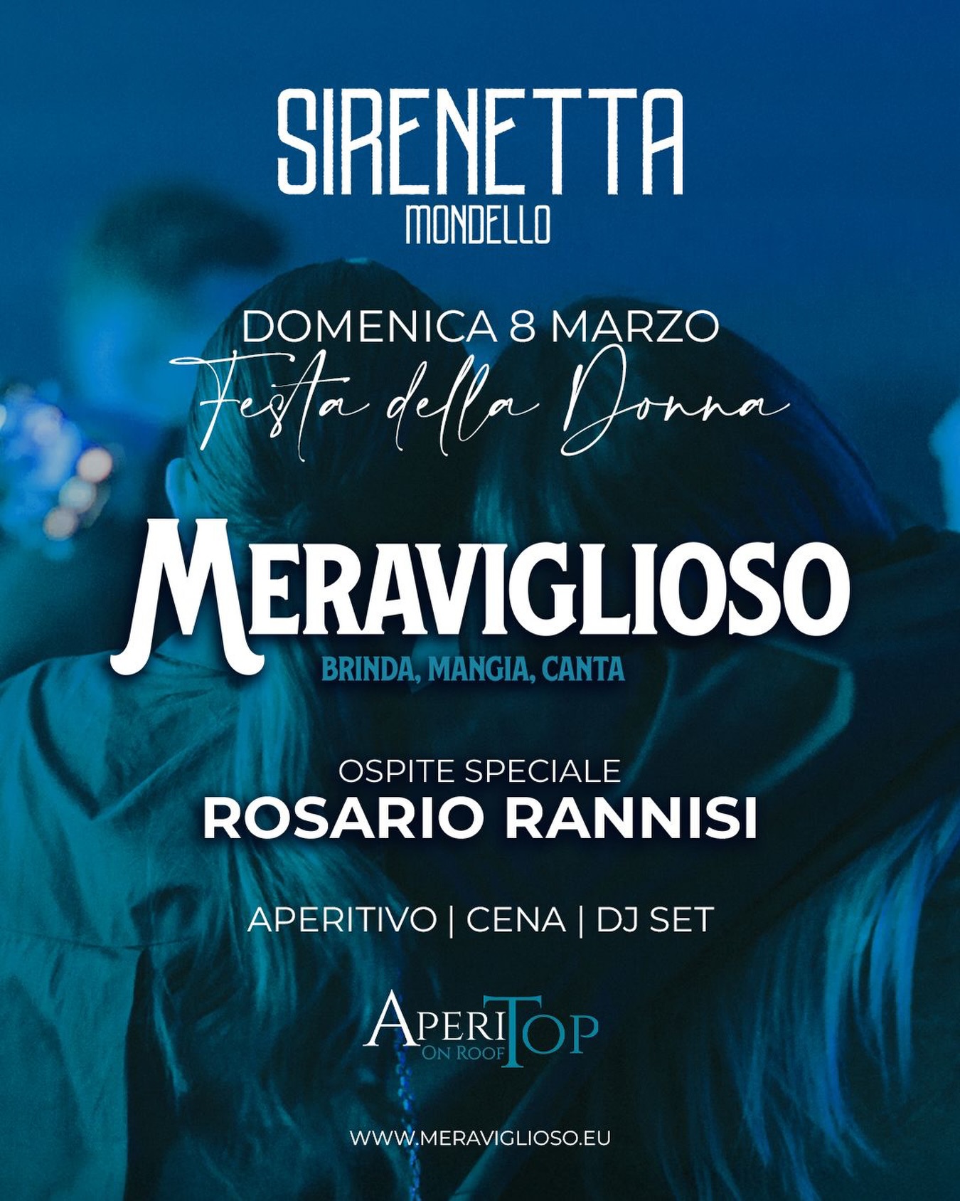 Festa della Donna 'Meraviglioso': serata con aperitivo, dinner live con Rosario Rannisi e Rox, a seguire DJ set con Toni Logalbo.