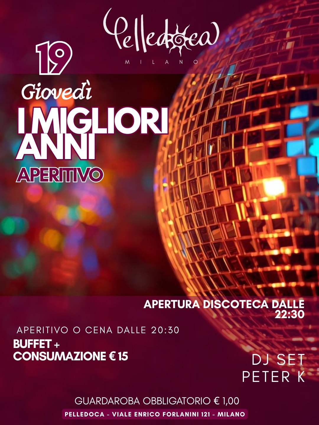 I MIGLIORI ANNI – Aperitivo del Giovedì con buffet dalle 20:30 e DJ set di PETER K dalle 22:30