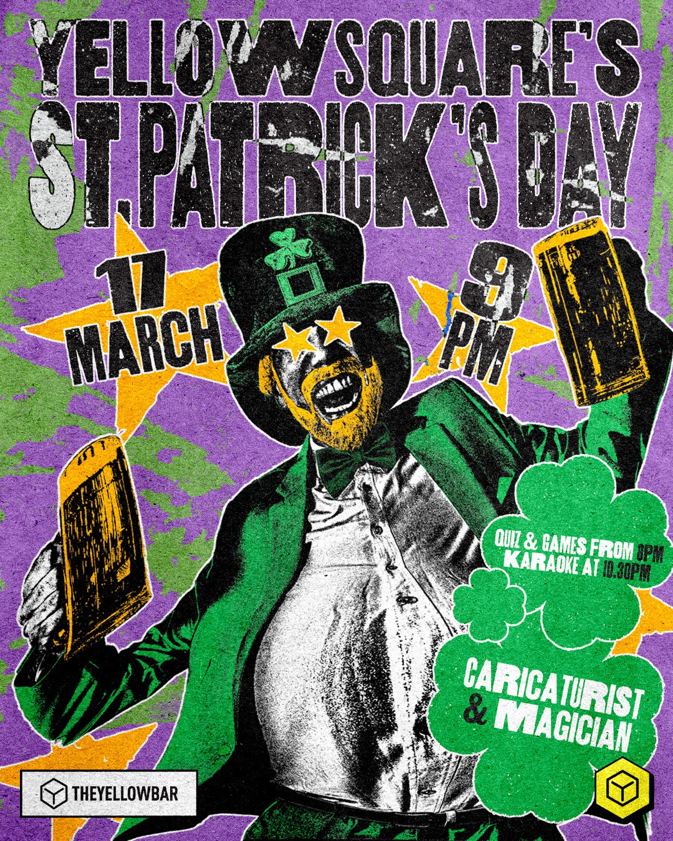 St. Patrick's Day al Yellow Square con Quiz & Games dalle 20:00, Karaoke dalle 22:00, Caricaturista e Mago