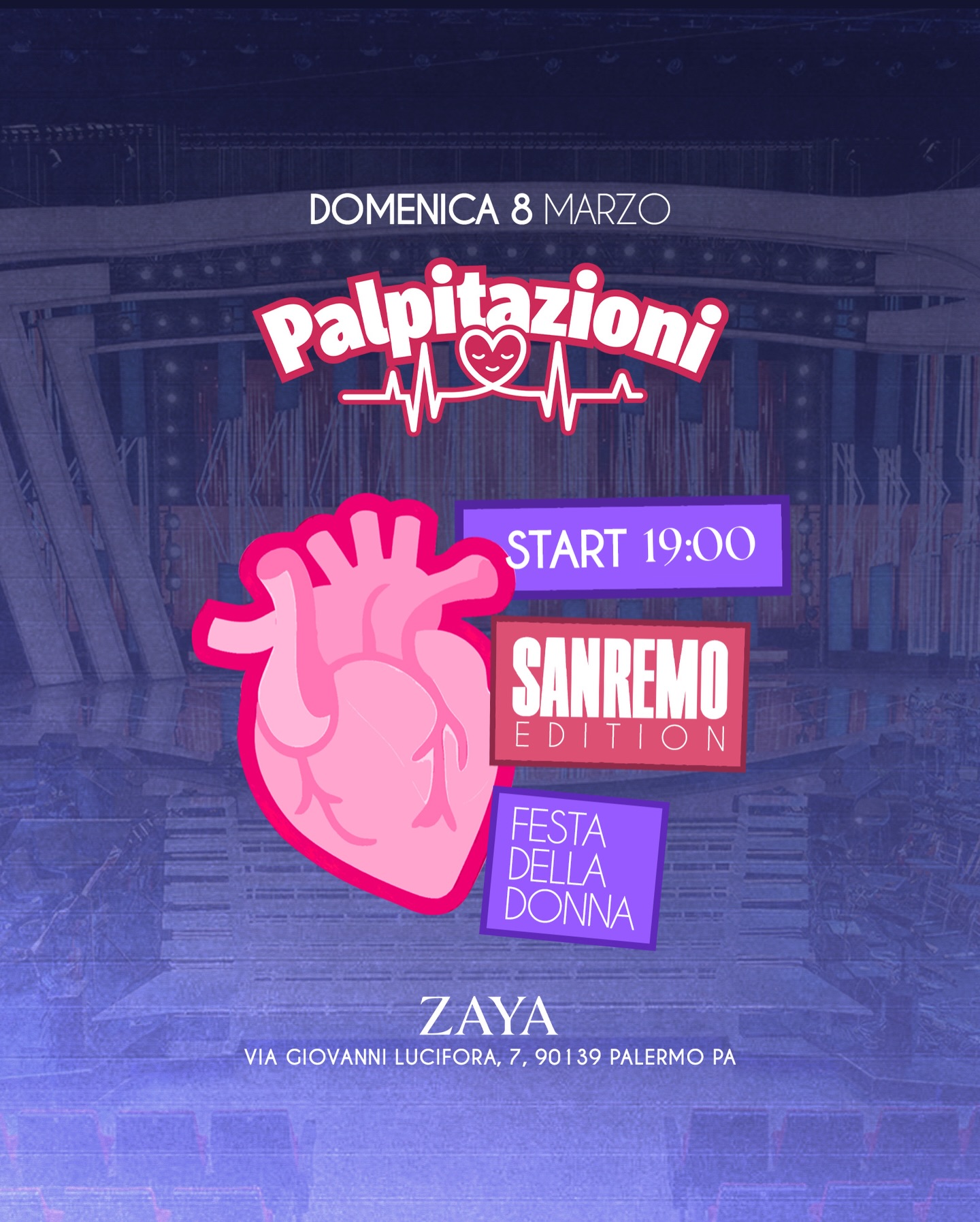 Palpitazioni Party – Sanremo Edition: Speciale Festa della Donna con le hit del Festival di Sanremo degli ultimi 30 anni.